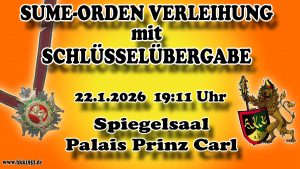 Die nächste Sume-Orden Verleihung findet am Freitag, den 22.1.2026 um 19:11 Uhr im Spiegelsaal im Palais Prinz Carl (Kornmarkt 1 / 69117 Heidelberg) statt.